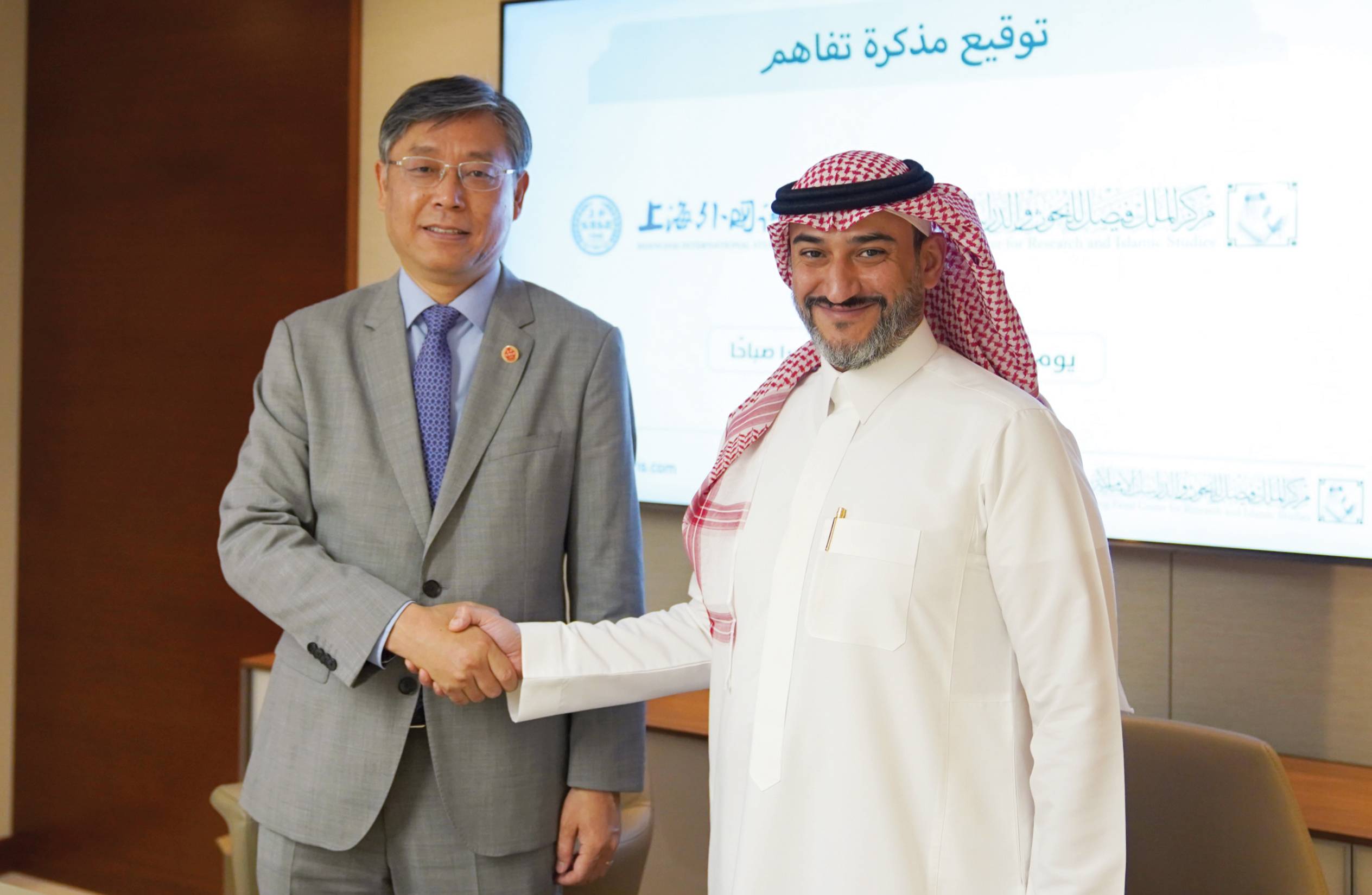 伊历1444年11月2日/公历2023年5月22日(周一),费萨尔国王学术与伊斯兰研究中心与上海外国语大学签署谅解备忘录。中心助理秘书长伊布拉辛·本·穆罕默德·达基萨尔、上海外国语学院党委书记姜锋代表双方签字。